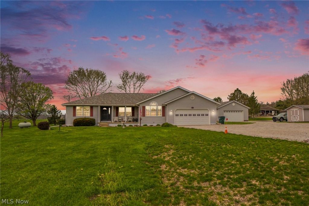 Escape to this move-in-ready Garrettsville ranch, perfectly situated on over 3.5 peaceful acres. A charming front porch greets you before stepping inside to a modern, open interior featuring luxury vinyl flooring throughout. The first floor offers three spacious bedrooms and two full baths, with a bright slider leading to your private back deck. This property is a dream?featuring an attached 2-car garage, a 30x24 outbuilding, and an additional storage shed. Bring your vision to the massive full unfinished basement, a blank canvas ready to become your future home theater, gym, or playroom. With the heavy lifting already done, all you have to do is move in! A long list of recent high-end improvements includes: Mechanicals: Whole-house generator (2020), Furnace tune-up & new thermostat (2026). Exterior: garage door (2020), and new main/patio doors (2026). Interior: All-new main floor lighting and outlets (2026) plus luxury vinyl flooring. All appliances stay?this home is truly turn-key!