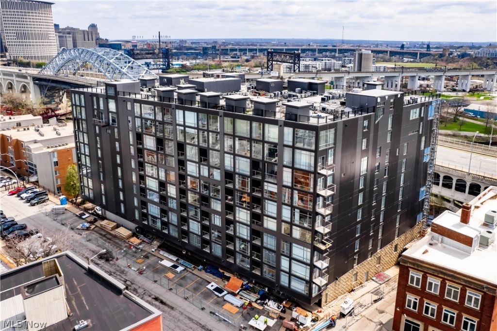 Nestled on the West Bank of the Flats, Stonebridge Condominiums is ideally located between downtown Cleveland and Ohio City. This updated 2 bedroom, 2 bathroom condo offers stunning views of the Cleveland skyline, Cuyahoga River, and Lake Erie. The open-concept layout features high ceilings and floor to ceiling windows that fill the space with natural light. The updated kitchen includes granite countertops, stainless steel appliances, and a bar island that opens to the main living area. A private balcony provides incredible views and a perfect place to enjoy morning coffee. The primary bedroom features double doors, large closet, and amazing city views. Both bathrooms have been updated, and in-unit laundry adds convenience. Includes one heated parking space in the P2 parking garage that is attached to the building. Whether you are looking as an owner occupant or investor, this building offers exceptional value and opportunity, as it allows for both long-term and short-term rentals. Building amenities feature a recently upgraded fitness center and 24-hour front desk/security. Exterior renovations are in the final phase of completion. This unit has already had main windows replaced. Located minutes from downtown Cleveland, the Flats, restaurants, shopping, and entertainment. Come see today!