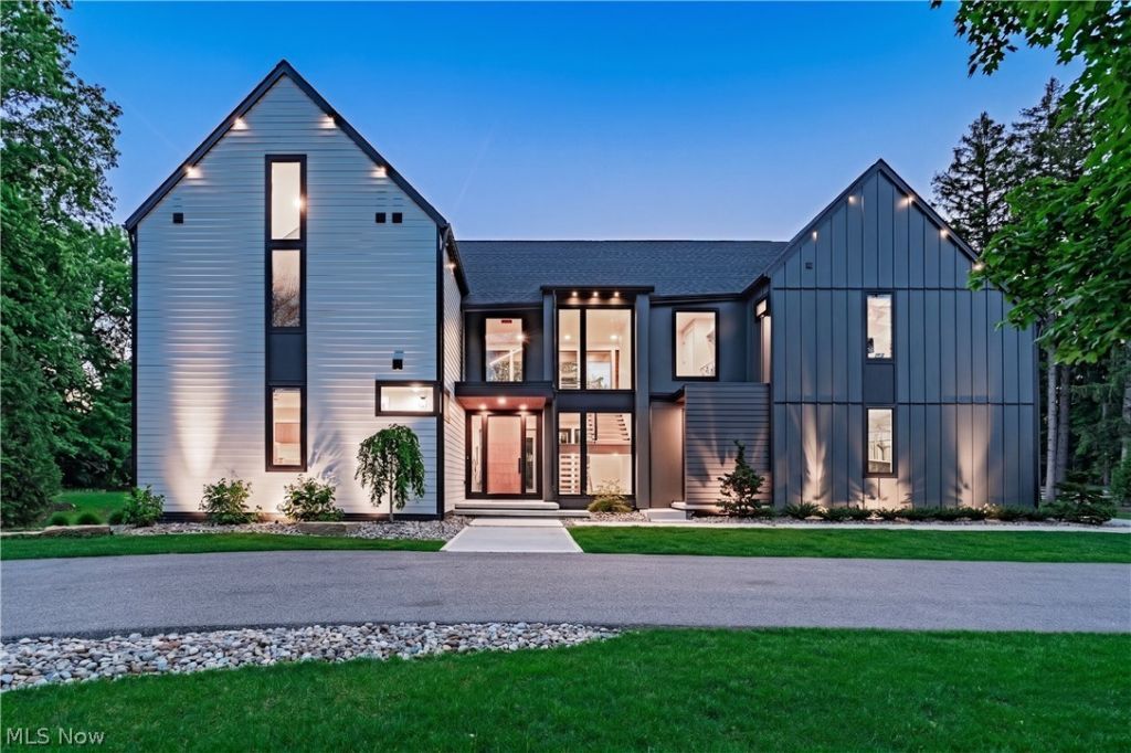 Set well back on nearly four private acres in Orange Village, this newly completed Payne & Payne custom home is a study in modern livability. Clean-lined architecture and thoughtful design create a seamless, elevated everyday experience. A striking two-story foyer opens to an airy, open-concept main level, where expansive glass, vaulted ceilings, and a dramatic fireplace anchor the great room, while the kitchen and dining spaces flow effortlessly for both daily living and entertaining. Every detail has been curated for ease, from smart home integration and intuitive lighting to flexible spaces, pocket doors, and a second-floor layout that balances openness with privacy. Upstairs, a private owner's retreat features vaulted ceilings, a spa-like bath, and an oversized walk-in closet. All other bedrooms enjoy well-designed en- suites and ample closet space. The second floor hallway walks out to an upper deck with a sculptural spiral staircase that offers a direct, almost resort-like transition to the pool below. Beyond, the property unfolds into a true backyard escape. A custom gunite pool with integrated lighting, water features, and an automatic cover is surrounded by curated landscaping, outdoor audio, and multiple lounging and entertaining zones, creating a setting that feels more like a private retreat than a residence. Modern in form, effortless in function, and designed for both quiet moments and vibrant gatherings, this home delivers a rare combination of architectural clarity and resort-style living.
